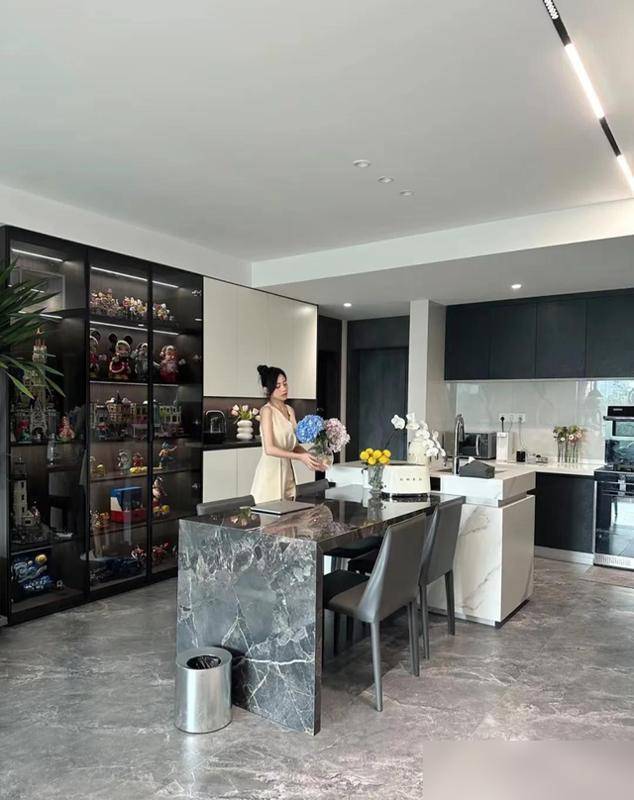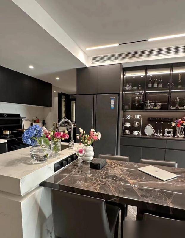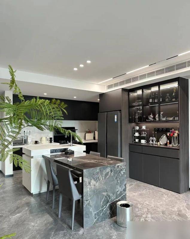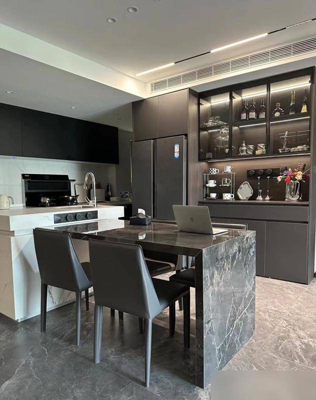 开放式厨房配岛台的设计太聪明了,洗切炒动线一气呵成,轨道插座随插随用,小细节里藏着大智慧。