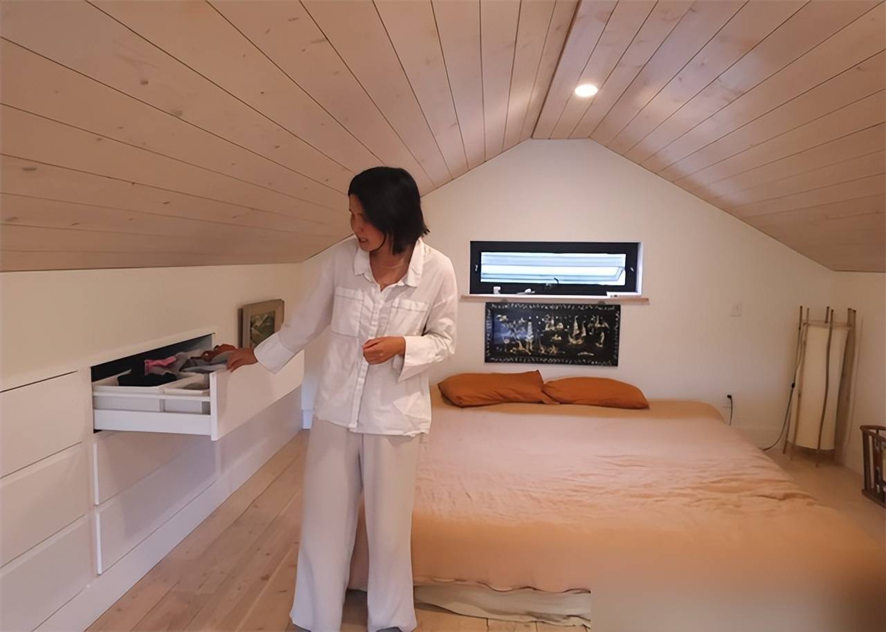 斜顶二层床垫直接落地,抽屉柜代替传统衣柜,这种“去家具化”思路反而让空间变得灵活起来,犹如穿着宽松衣服般自在。